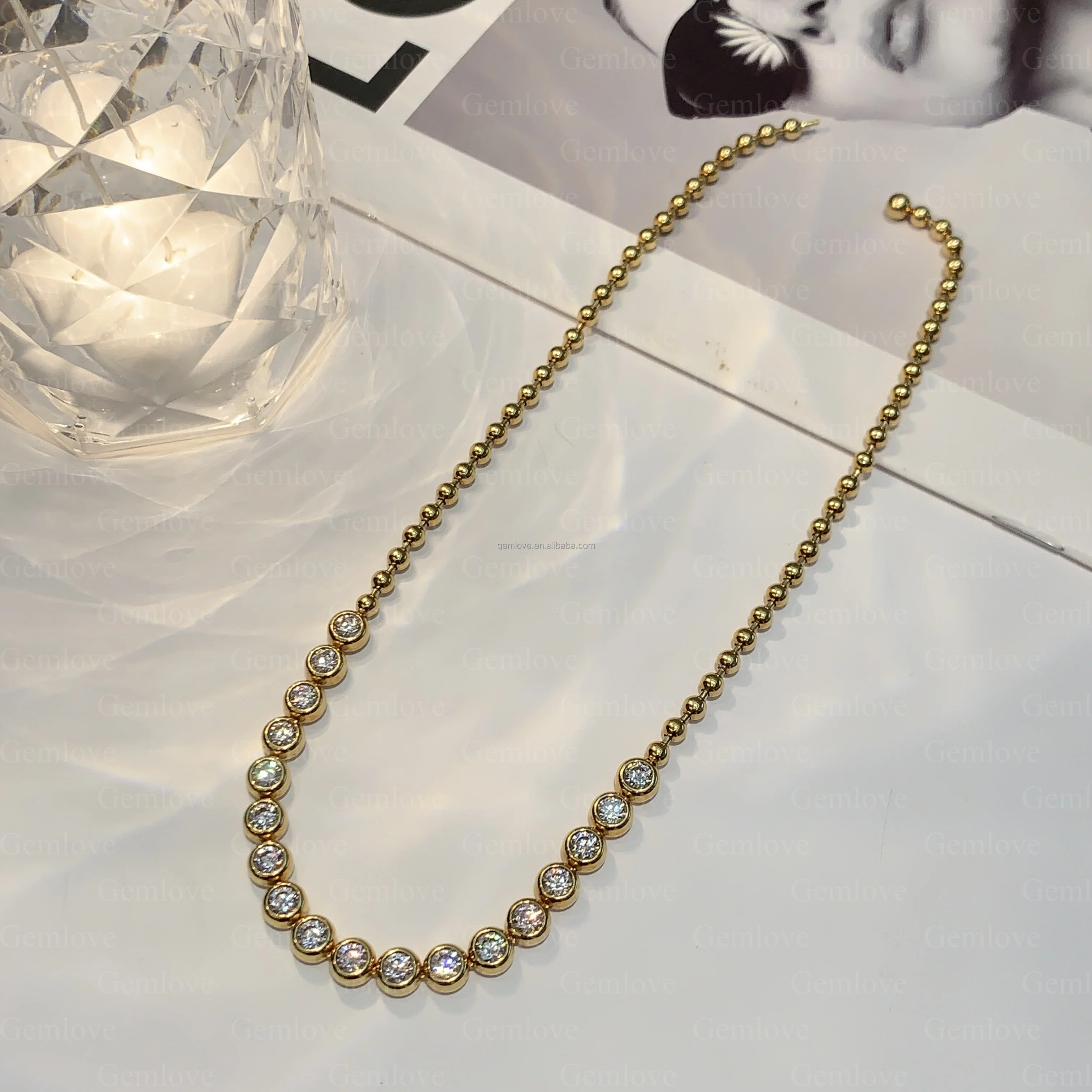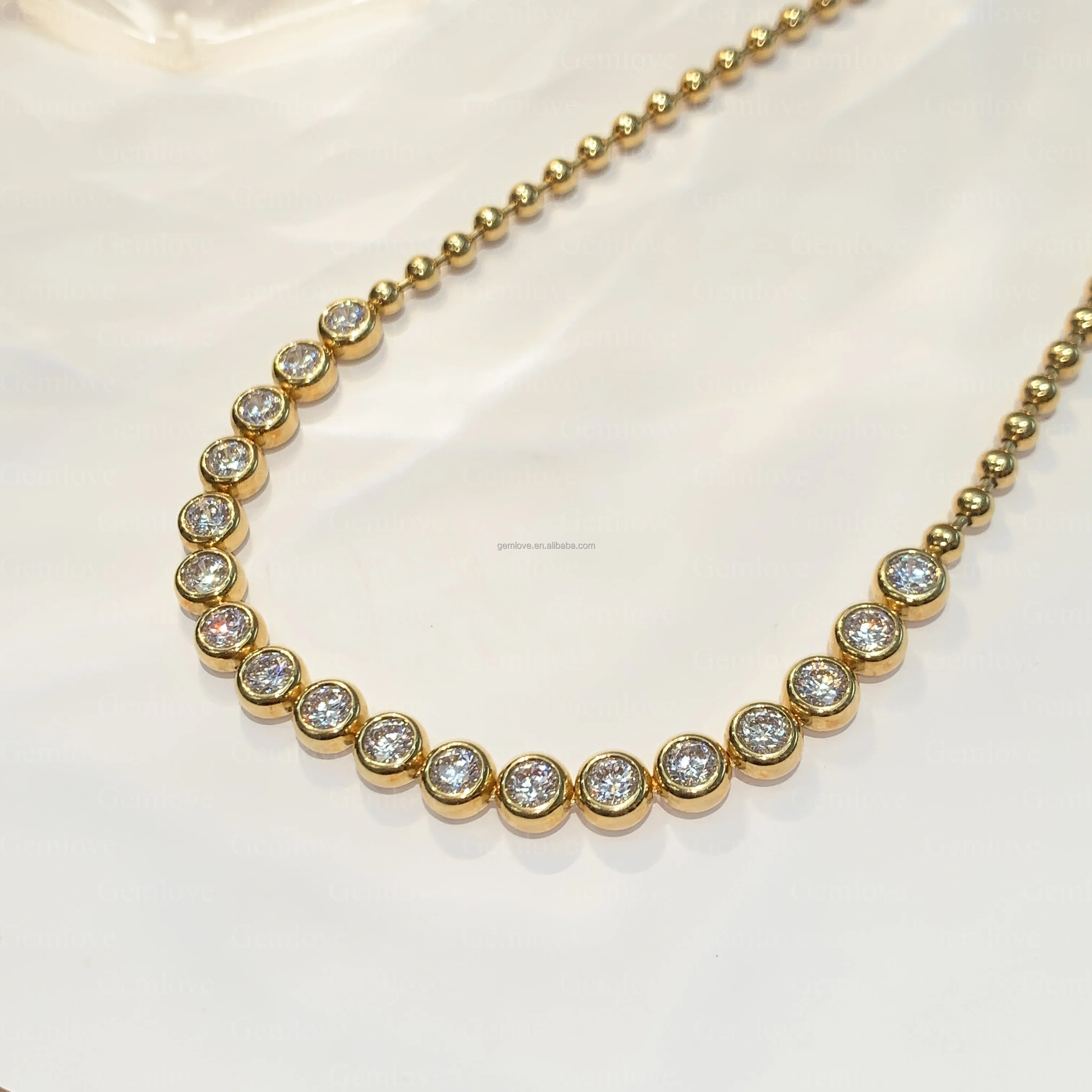 Custom Vintage-Inspired Lab Diamond Necklace - 18K Gold 29.76g 16cm Staggered Collar Chain